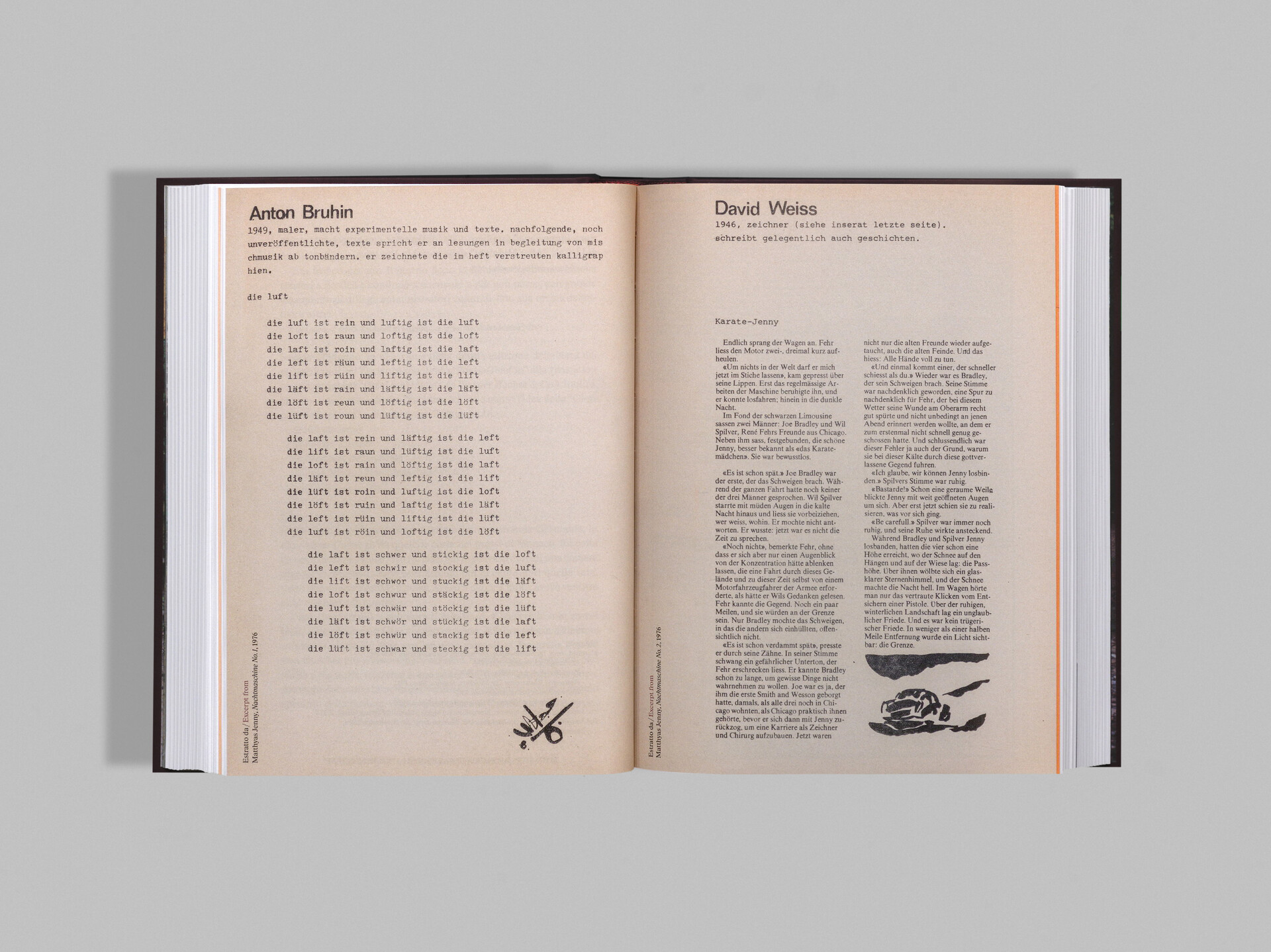 This book brings to life the artistic and literary community that flourished in Carona, Ticino, from 1968 to 1978. Centered on Swiss artist David Weiss (1946–2012) and his circle of friends, it explores their works, processes, and the communal spirit that fueled artistic experimentation.
